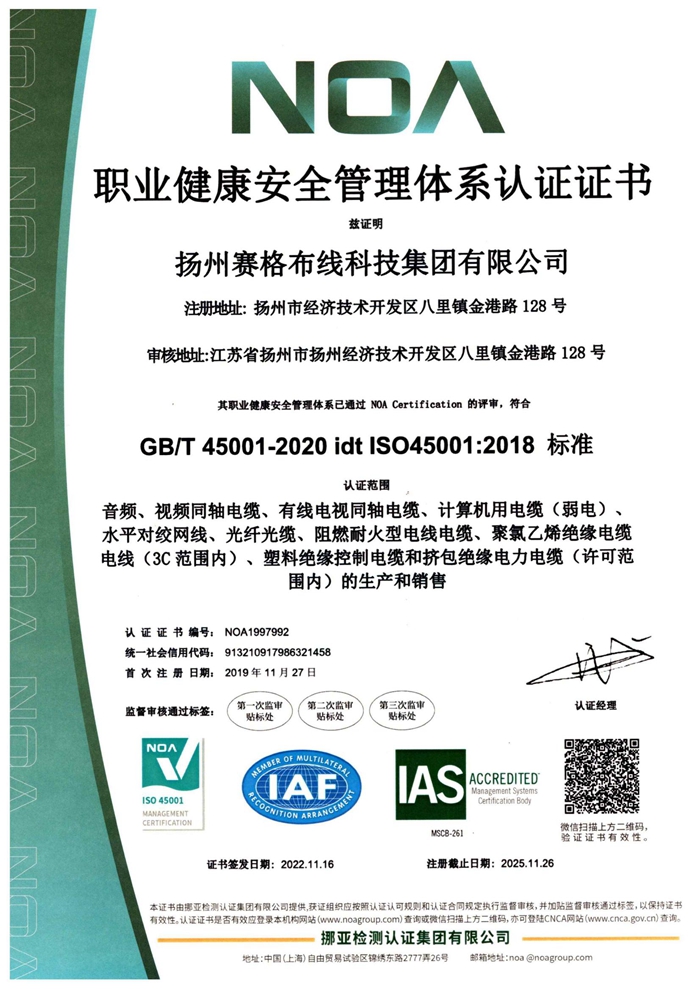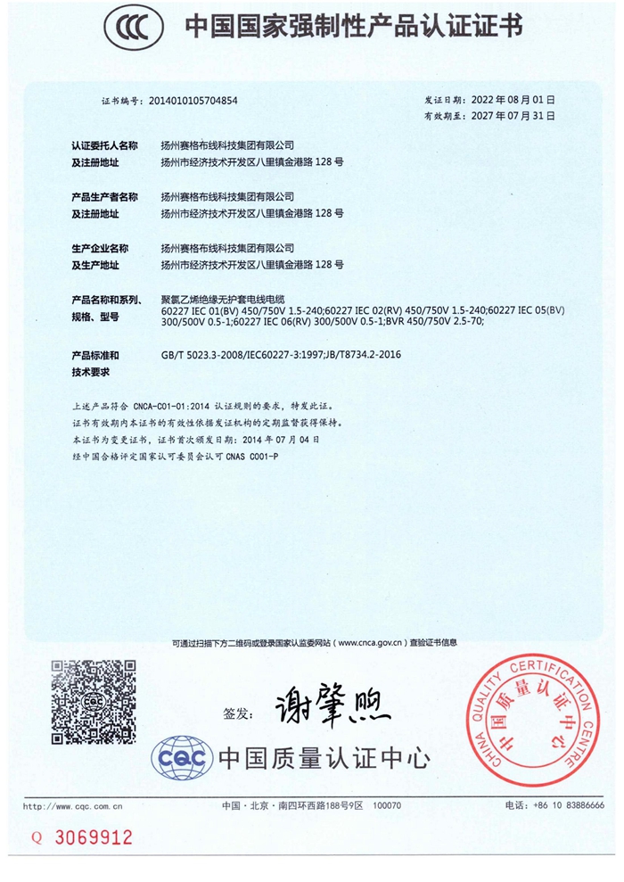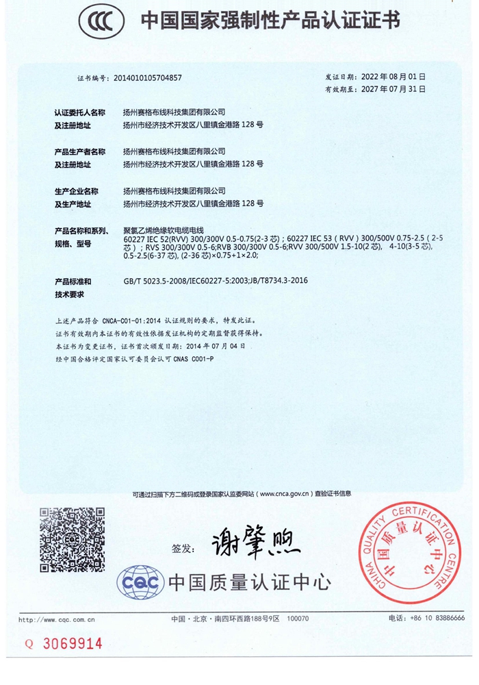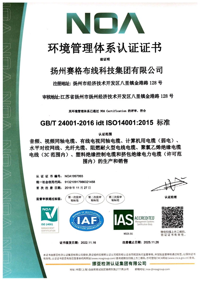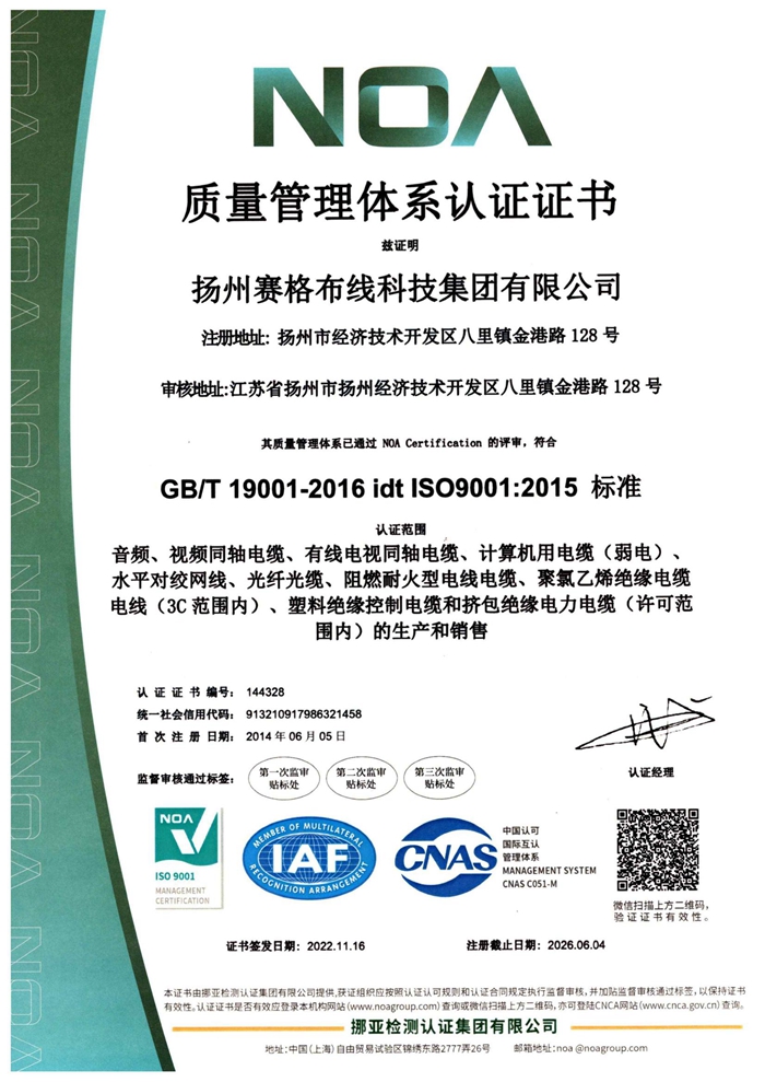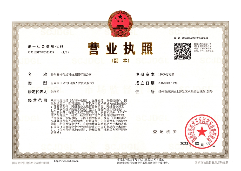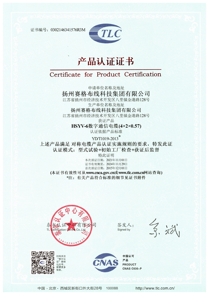 “賽格集團(tuán)”位于美麗的揚(yáng)州,公司占地面積106800平方米,固定資產(chǎn)20000萬元,職工近千人,其中各類專業(yè)技術(shù)人員過百人,系中國安全防范產(chǎn)品行業(yè)協(xié)會(huì)理事單位。公司擁有各種先進(jìn)的綜合布線產(chǎn)品及線纜制造和實(shí)驗(yàn)檢測設(shè)備,產(chǎn)品嚴(yán)格按照國家標(biāo)準(zhǔn)或行業(yè)標(biāo)準(zhǔn)組織生產(chǎn),并已獲得國家質(zhì)量認(rèn)證中心CQC頒發(fā)的CCC證書和上海挪亞檢測認(rèn)證集團(tuán)有限公司頒發(fā)的ISO9001:2015證書,泰爾認(rèn)證中心頒發(fā)的“泰爾認(rèn)證”等!